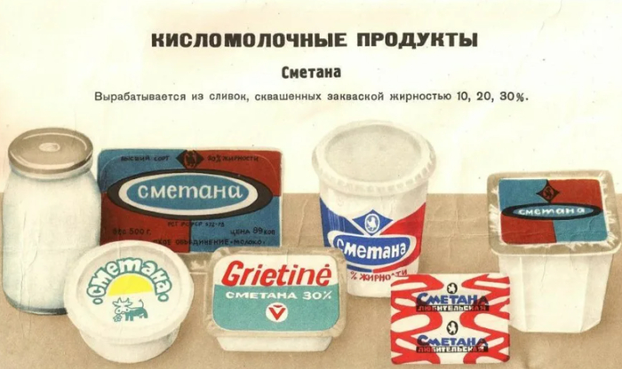 В реальности, конечно, дела обстояли несколько иначе: в универсамах крупных городов сметану можно было встретить и развесную, и фасованную в стеклянные баночки, и упакованную в пластиковые стаканы или коробочки с крышечкой из цветной фольги. В регионах она чаще встречалась либо развесная (и, как правило, основательно разведенная), либо в обменной таре - стеклянных банках.