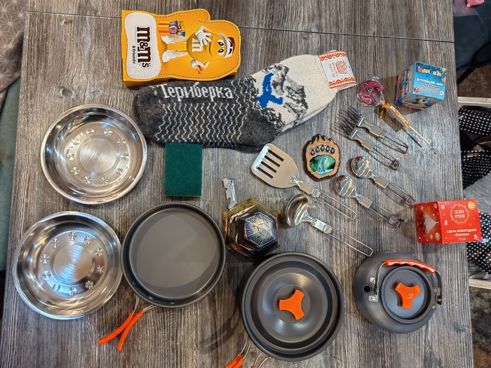 Набор походной посуды для работы на костре/горелке, теплейшие носочки из любимой Териберки и классный когтистый магнитик!