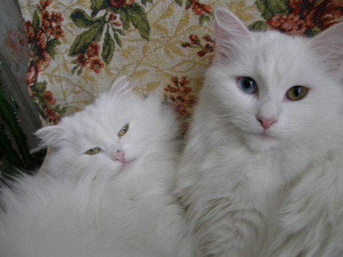 Самое забавное, что у нее были котята лишь однажды, и там также была одна белая красивая кошечка, Ириска, которую мы оставили себе)