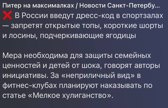 В Сети пишут, якобы в Государственной Думе рассматривается законопроект о введении обязательного дресс-кода в спортзалах «для защиты семейных ценностей и детей».