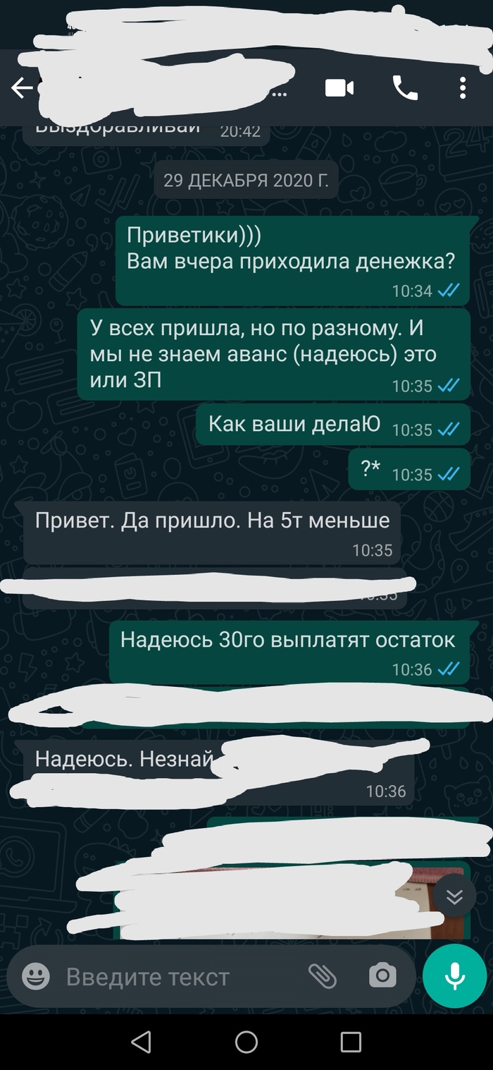 Вдобавок к недоплатам зарплаты, ещё никому не пришел удвоенный предновогодний аванс👍🏾. И почти три недели выживали как могли).