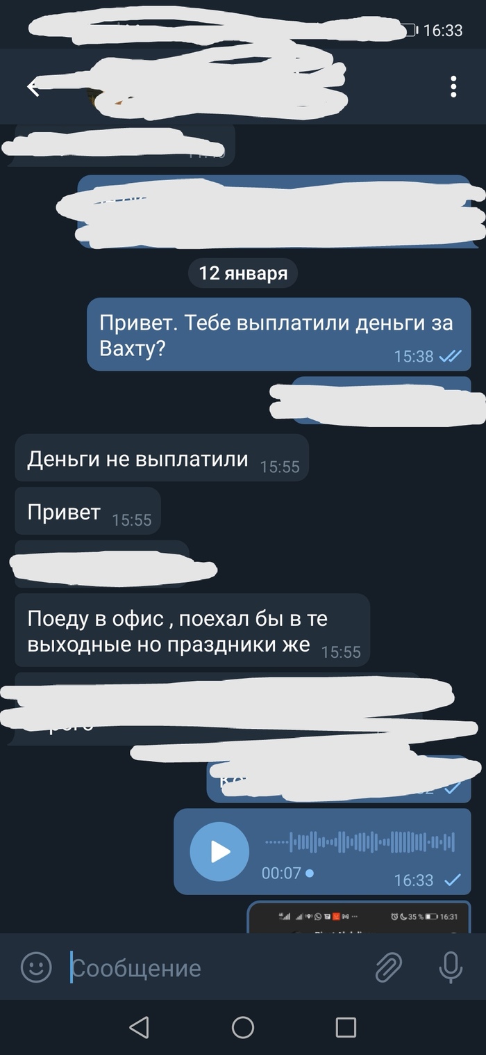Кстати, ранее до выплаты зп, после вахты приезжая в офис, чтобы закрыть Вахту. Говорят, что здесь такого нет. Хотя по закону и закрыть Вахту и выплаты должны быть сразу (3дня). "Вы закончили работать, значит вахта закрылась..." (хотя мне два бригадира говорили, что такое возможно) мы вам дадим справку с НДФЛ" также ее жду до сих пор😆