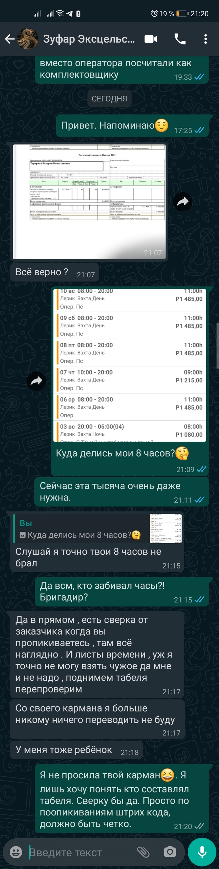 Через несколько дней мне перезвонили и сказали, что я не дала никакую информацию о том сколько я отработала и чего там не достаёт?! Ахаха смешно. Табель, который я вела, ему ещё после ЗП скинула. Снова обещали разобраться.