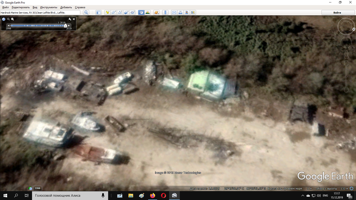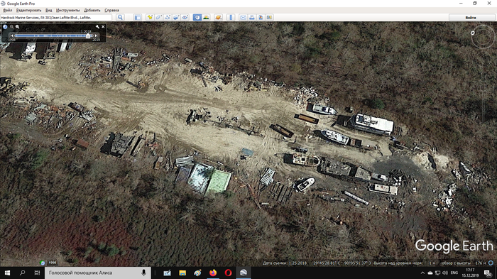 Разборка "Заката"/"Черной жемчужины"/"Мести королевы Анны" в Hardrock Marine Services, Lafitte на Google картах.