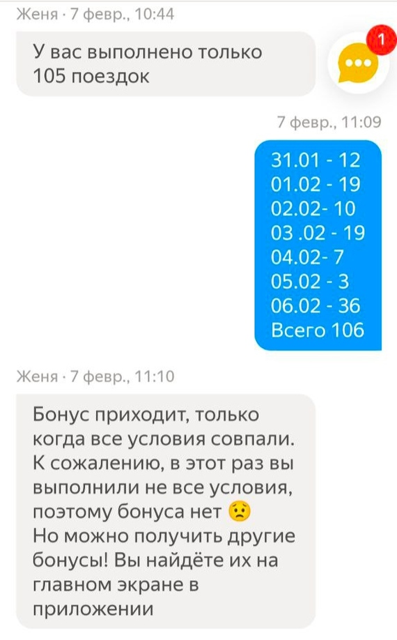 Так вот, откатываем 106 поездок за оговоренное время иииииии.... Где деньги, Яндекс?