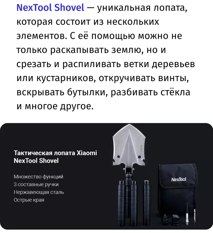 Инструмент конечно полезный, но вот так я буду выглядеть после того, как батя увидит, как я вскапываю участок, отпиливаю ветки, откручиваю винты и открываю бутылки этой лопатой: