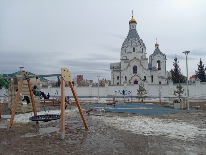 Раньше там был храм и только, сейчас с одной стороны оборудовали дополнительно сквер.