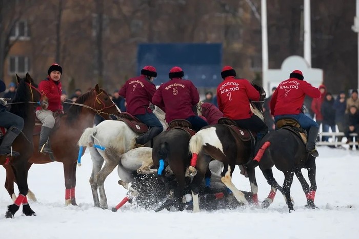 От себя, просто для понимания: в центре Москвы, раздирая рты в кровь лошадям, пуская тех из них, кто не сдох в процессе, на шашлык, толпа азиатов таскает по полю тушу мёртвого козла. 21 каменный век.