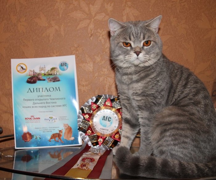 Но после первой выставки, хоть кот и не был готов к полноценным "соревнованиям" многие изменили своё мнение. Даже прозвали его Сэр Грейсон, потому как с таким надменным видом даже действующие чемпионы не позволяли себе там находиться.
