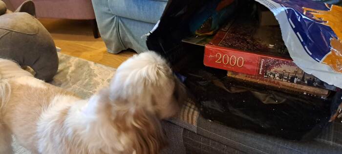 Я указала, любовь к пазлам, всему желатиновому и клюкве с сахаром. А также к необычным сережкам. Все это Санта и прислал! А также позаботился еще об одном члене семьи, который только ожидается :-) И добавил праздничного настроения мишурой!!