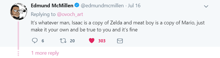 "Кто бы ты ни был, Айзек это копия Зельды, Митбой копия Марио, просто сделай это собственным и верь в себя и все будет окей"