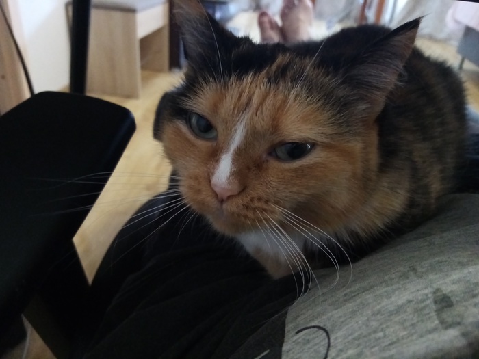 Эта гораздо более социализированна, тоже ласковая. И стонотина) Постоянно стонет, если хочет жрать, а жрать она хочет постоянно) Изображает из себя умирающую, прям вот сейчас помрёт, даже стонет так, будто сил уже не осталось. Не ведитесь!) И у неё аллергия (видимо) на дешёвый сухой корм. Не знаю как на дорогой, не пробовал, не могу себе позволить. Но с консервами всё ок, даже с дешёвыми.