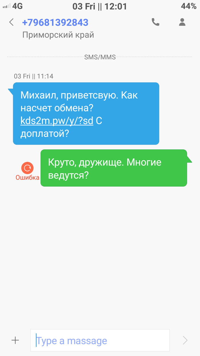 Ну, написал ему в ответ смс, но, думаю, что это всё делает бот какой-нибудь, поэтому ответное смс даже не дошло до адресата.