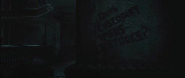 И самое интересное наверное. Пока вроде никто не говорил о ней. Надпись на стене на латыни "Quis custodiet ipsos custodes?" в переводе на английский "Who watches the watchers" что отсылает нас на Хранителей