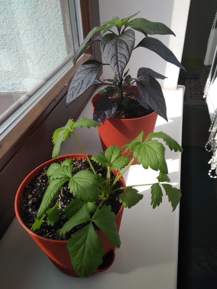 Похоже просто сорняк, но может кто знает что это? Вот так он выглядит сейчас, с перцем на заднем плане.