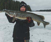 Выставили в трёх точках. 5 жерлиц на дальней мелководной точки, любимое место крупной щуки, как показали предыдущие выезды. 5 на месте стоянки и 3 у ручью. Результат впечатлил в такую погоду.