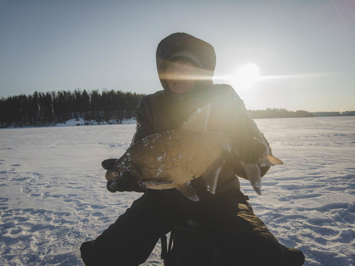В прошлом году льда не было практически и не удалось половить леща. Но в этом году зима отличная.