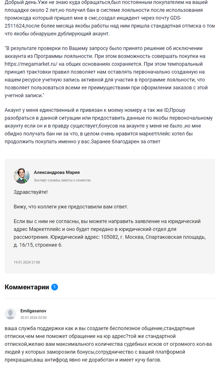 Мегамаркет или Мегаскам. Бан программы лояльности