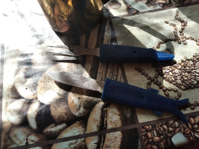 На всякий случай нож с вилкой, которые ещё подарил мне мой отец. Сейчас они перешли моему ребенку.