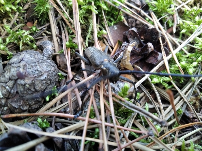 Нашли в лесу лежащее дерево. Немного подрихтовал топором, чтобы можно было сидеть.
