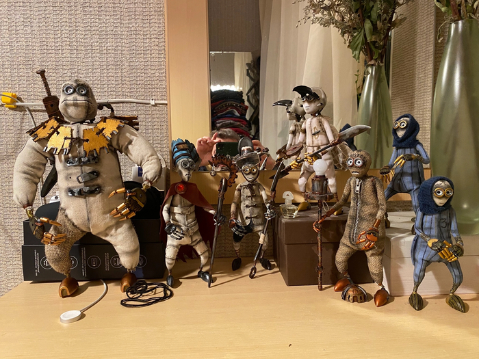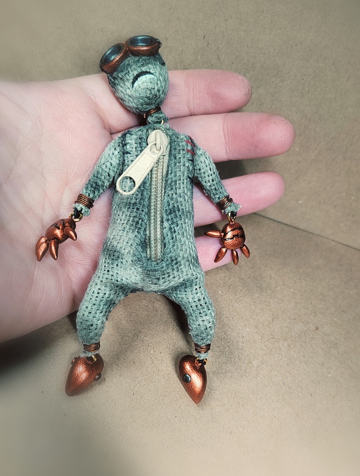 Фигурка девять, персонаж мультфильма. Процесса изготовления нет, но скоро будет. Выполнен в смешанной технике. Полимерная глина и мешковина. Подвижный. Рост 23см.