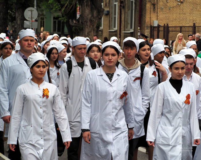 Благодаря белым халатам очень выделялись студенты местного мед.колледжа.