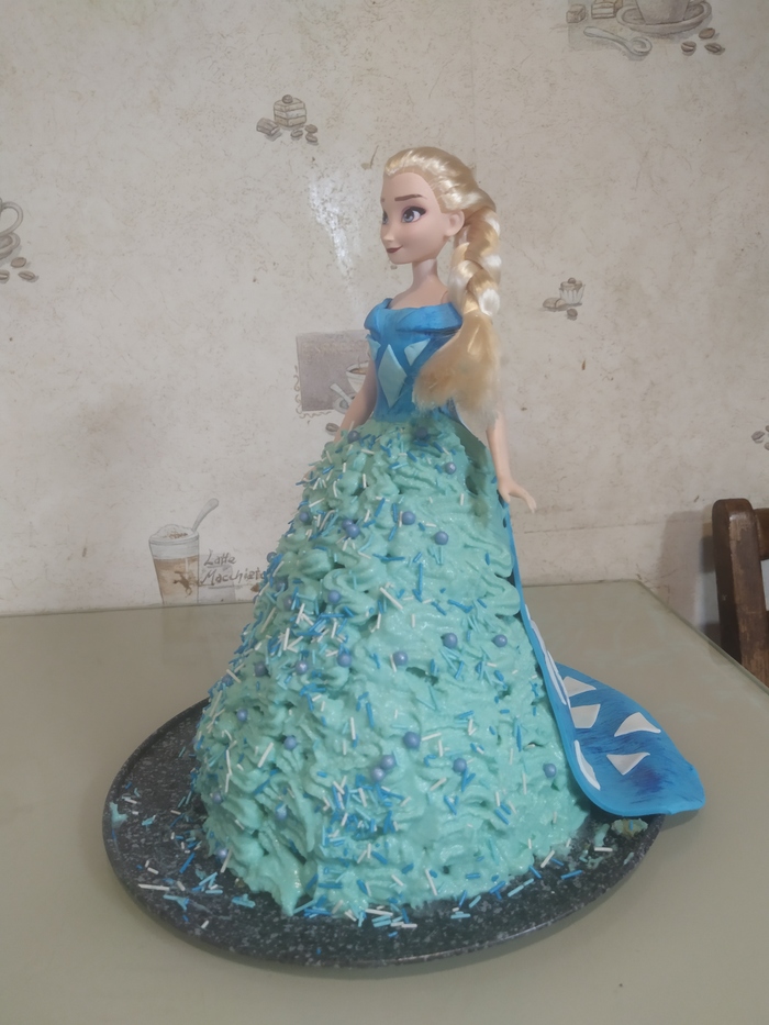 Второй торт с куклой для дочери. Тоже бисквит и масляный крем.