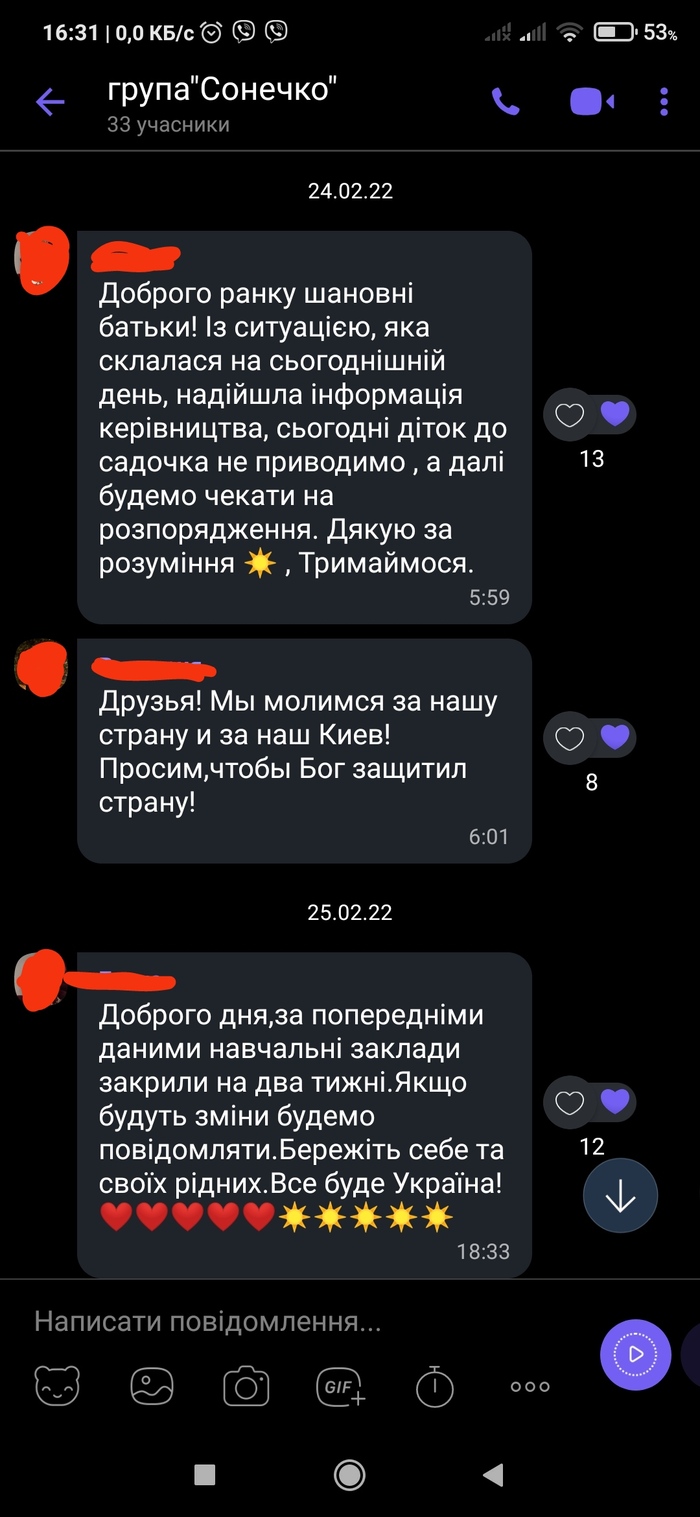 - Даша, началась война. В 5 утра бомбили Борисполь и Бровары
