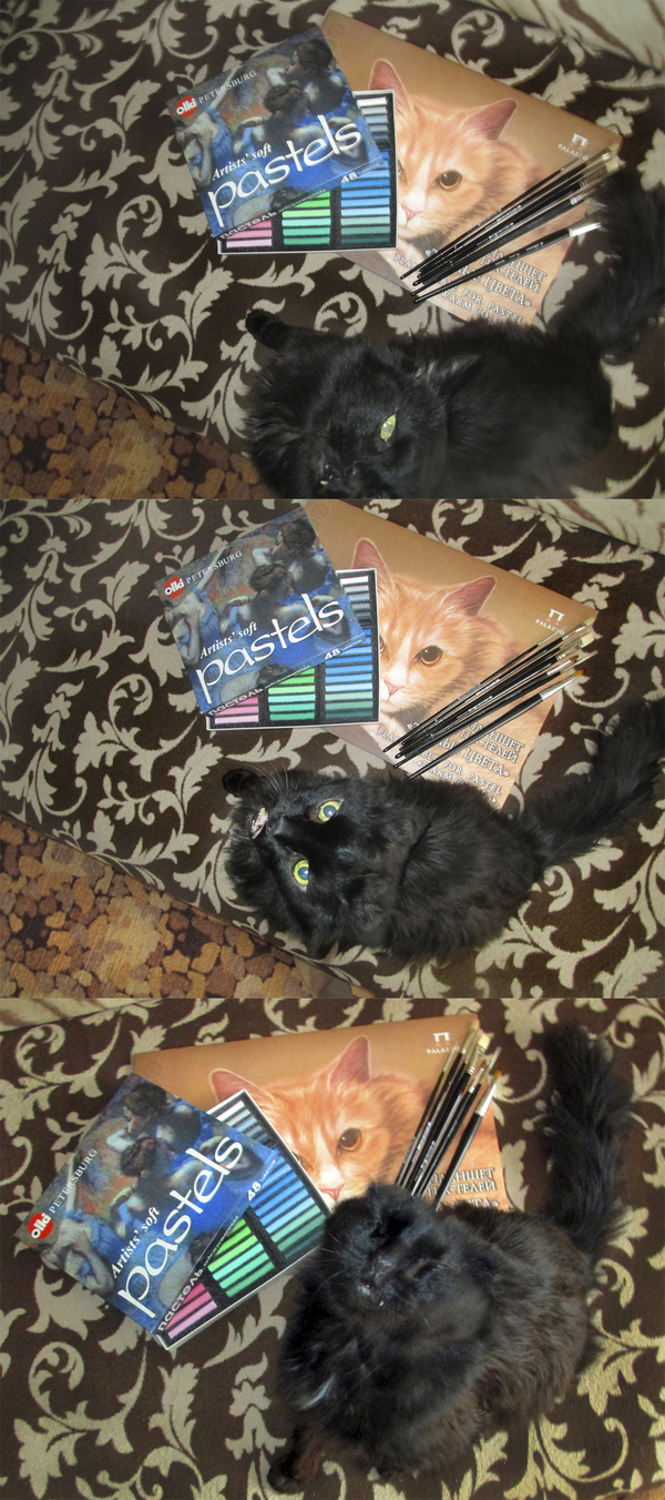 Открыв дверцу, я только было потянулась к колбасе, как вдруг откуда-то сбоку выбежал огромный чёрный таракан - и прямо в мою сторону! Странно, что от моего визга его не разорвало на месте. Короче, пока я махала руками и колбасой, он шустро нырнул обратно в темноту щели. Мерзавец и подлец.