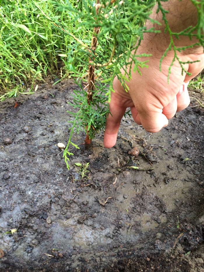 6) Никакого особенного ухода маленькая туя не требует. Просто поливайте иногда и фотографируйте. Во-первых, как мне показалось, туям это нравится, а во-вторых, поверьте, фотки пригодятся, как доказательства. В будущем обязательно кто-нибудь не поверит, что семиметровый, вечнозеленый гигант - Ваш ребеночек.)