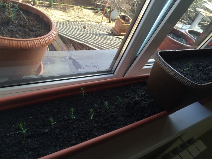 4) Семена сажаем в мокрую землю и запасаемся терпением. Это не петрушка. Бывает, что туи живут по 500 лет, а потому и рождаются медленно, тщательно подготовившись... Встречаем!