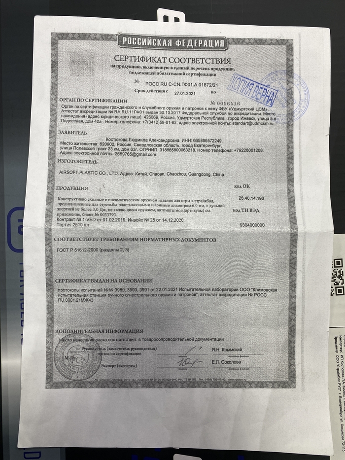 Имеется заверенный сертификат соответствия что это не оружие, проблем в самолёте не будет. Надо только перед проходом через рамку предупредить что у вас страйкбольный автомат. Все расходы (то есть оплату багажа) возьму на себя.