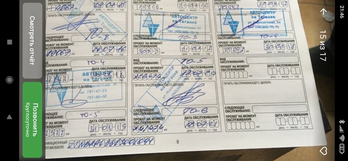 Даже есть фото сервисной книжки, ну практически капсула времени: