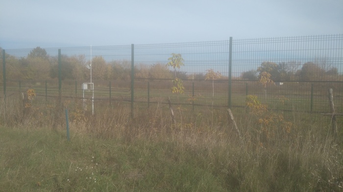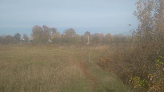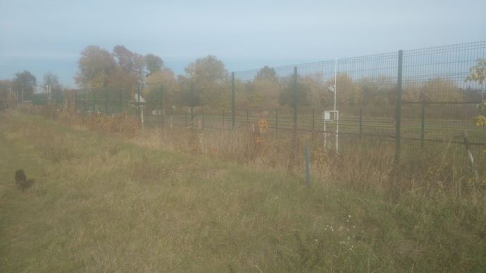 Вот он, погранпереход на Россию. По полю не пройти, там возле него колючка и тот же забор. Фотографировал метров с 500 с трассы.