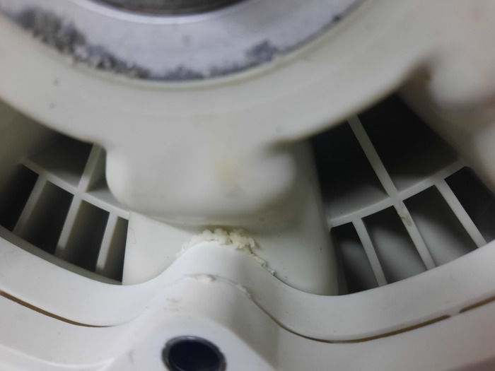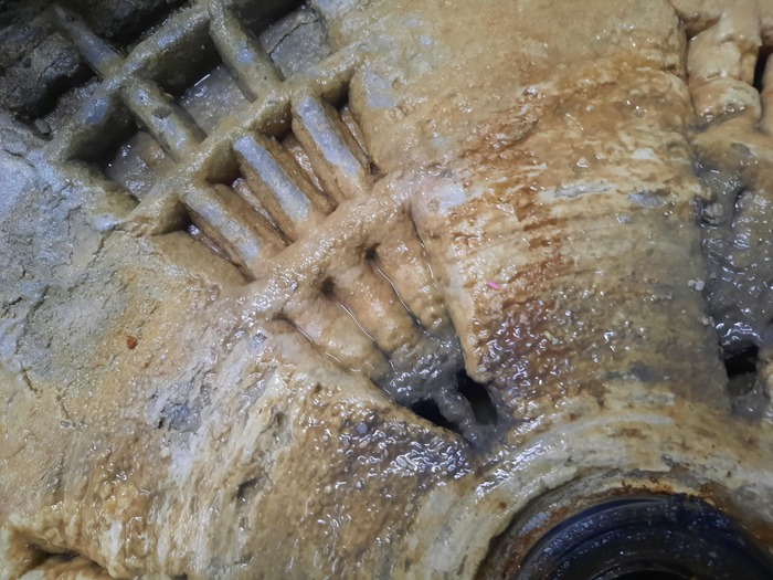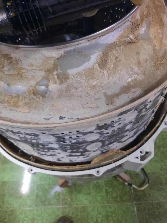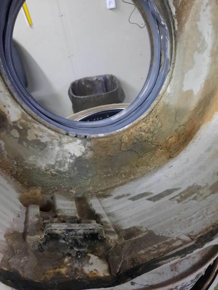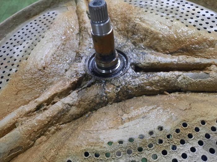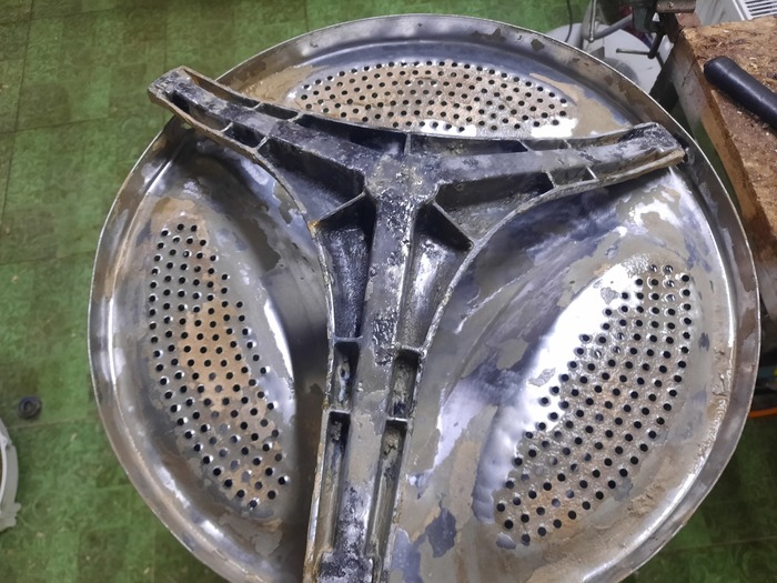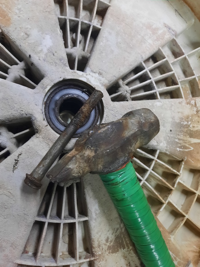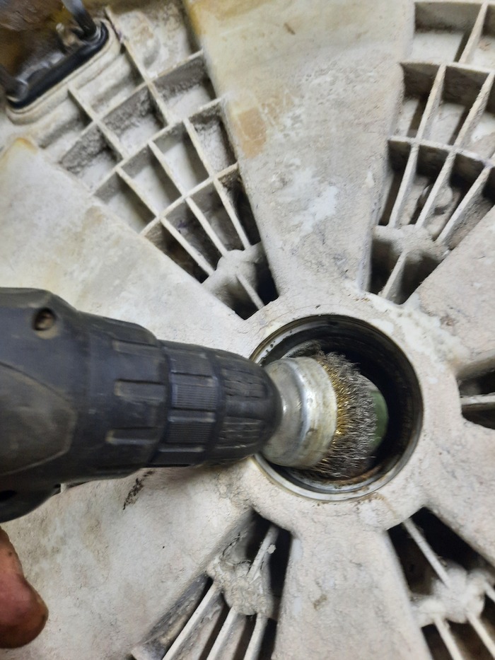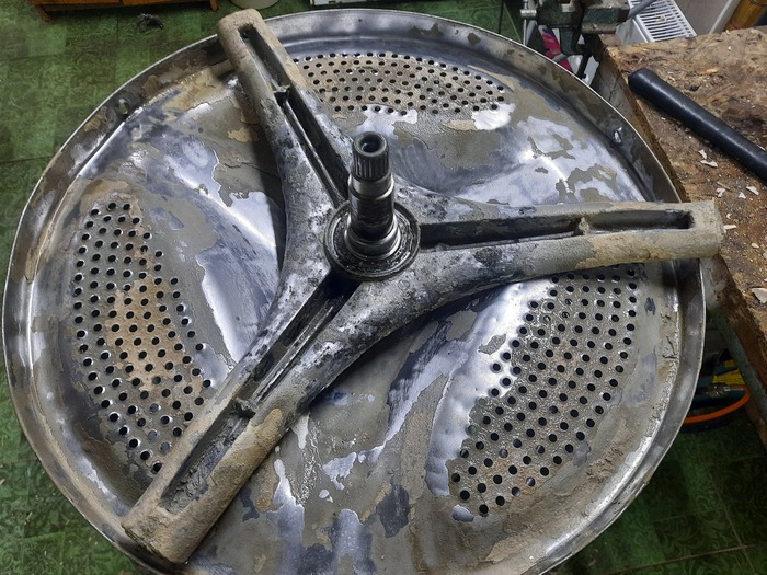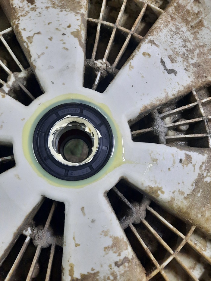 Народ стирает в своих стиралках бельё, даже не подозревая что там такое 😱. Залежи слизи ближе к центру барабана повсеместное явление, связанное с низкой температурой стирки. Злоупотребление порошком, и использование порошков на основе натурального мыла - кратно увеличивают вероятность таких загрязнений. И к сожалению подозрения подтвердились. Выдавленный сальник допустил влагу к подшипнику и силуминовой ступице. Полубака под замену...