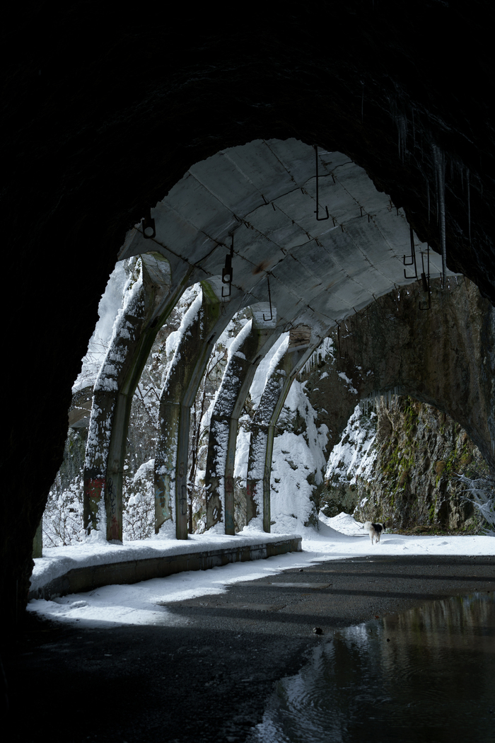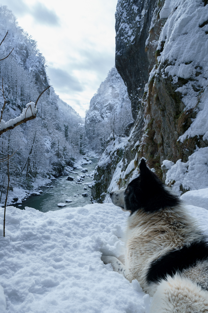 Доброго времени суток друзья. Я уже публиковал снимки с данной дороги в летнее время года, зелень и яркие цвета конечно прекрасное зрелище, но на мой взгляд именно в снежную пору местные виды обретают свою красоту. Мы шли по колено в снегу по непротоптанной тропе и это определенно радовало, нашим спутником стал бродячий пес, что сопровождал нас всю дорогу и позируя для снимков, ну чтож перейдем к истории и снимкам - приятного просмотра !