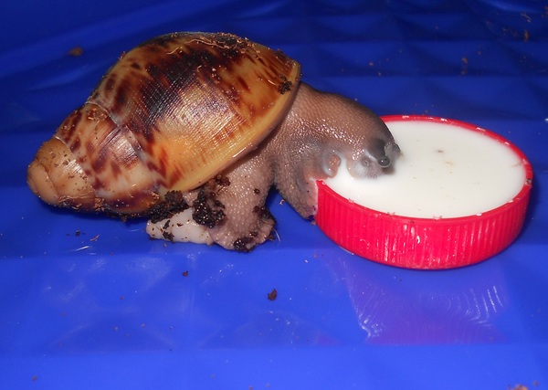 Ракушки у всех хорошие-не побитые, у двух самых больших есть маленькие шрамики-но их не видно, у младшего ракушка идеальная-хоть сейчас в кино сниматься)) При хорошем уходе вырастет до своей нормы и будет шикарным, жирным улитосом