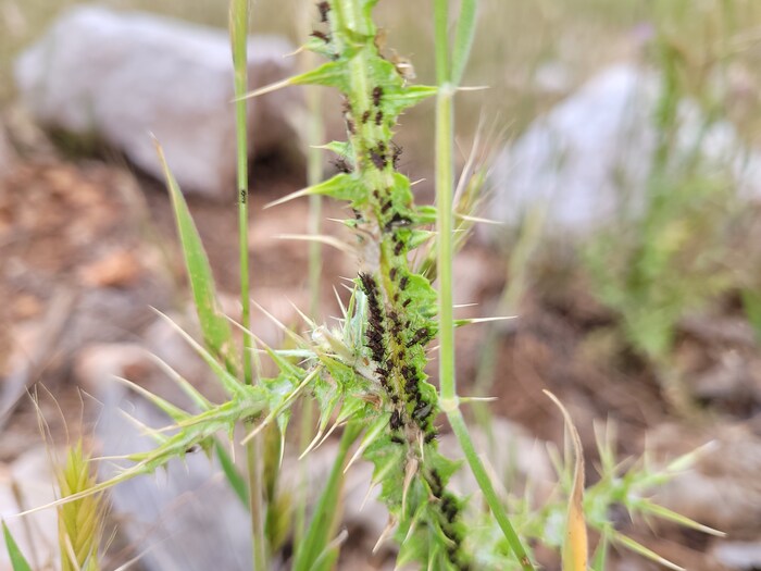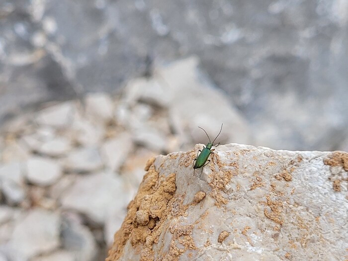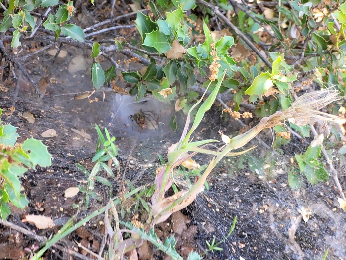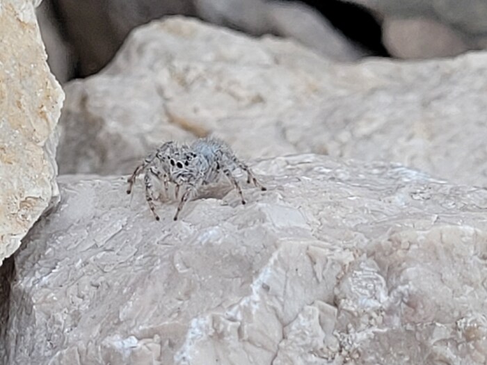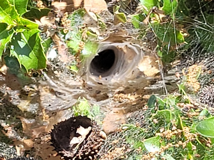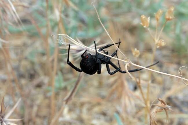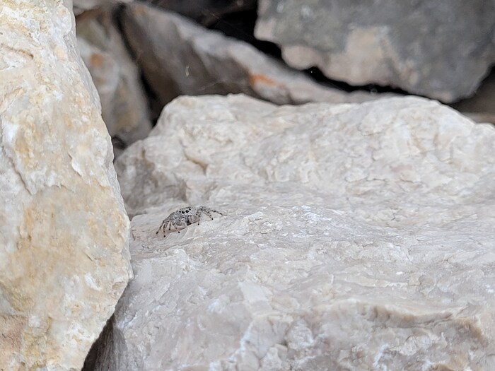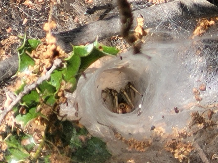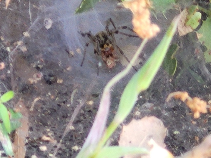 Еще в камнях была паутина, с черным пауком , он был блестящий , гладкий, быстрый, брюшко круглое.