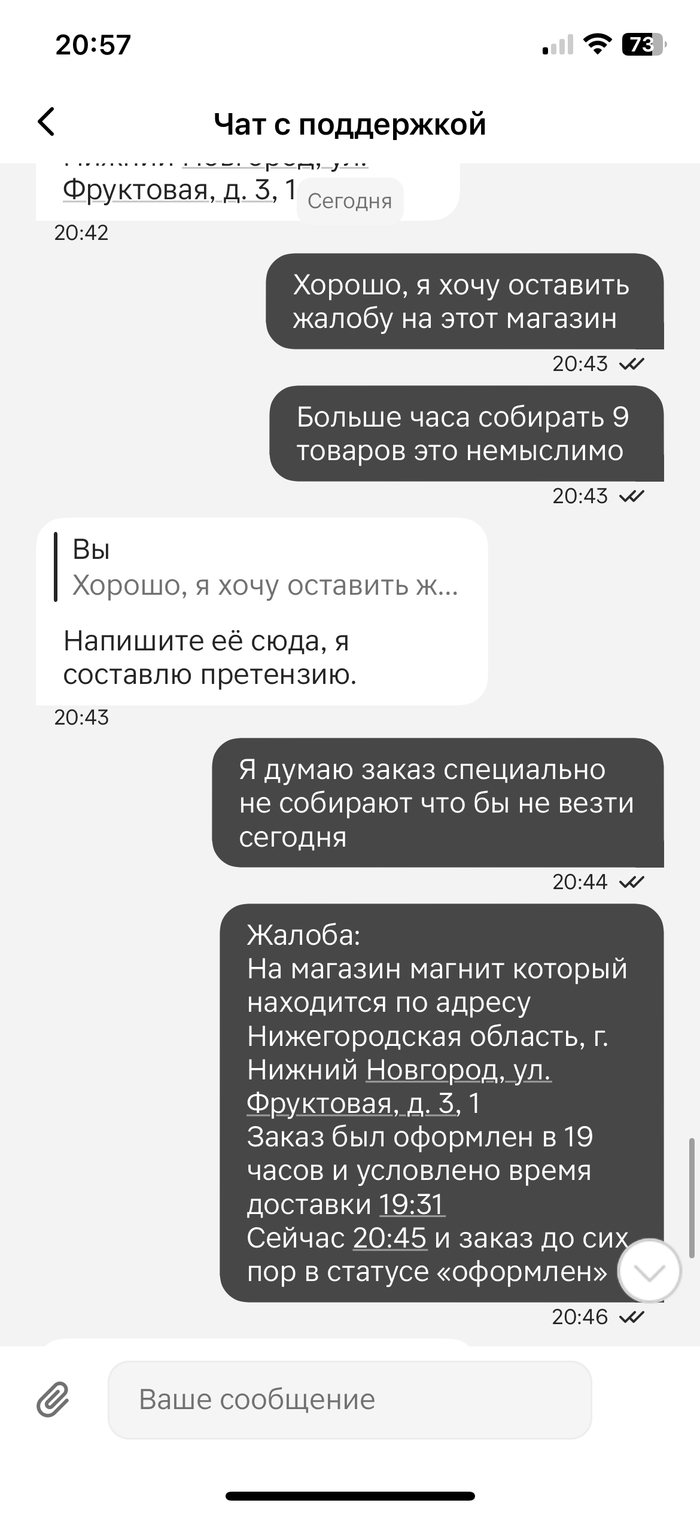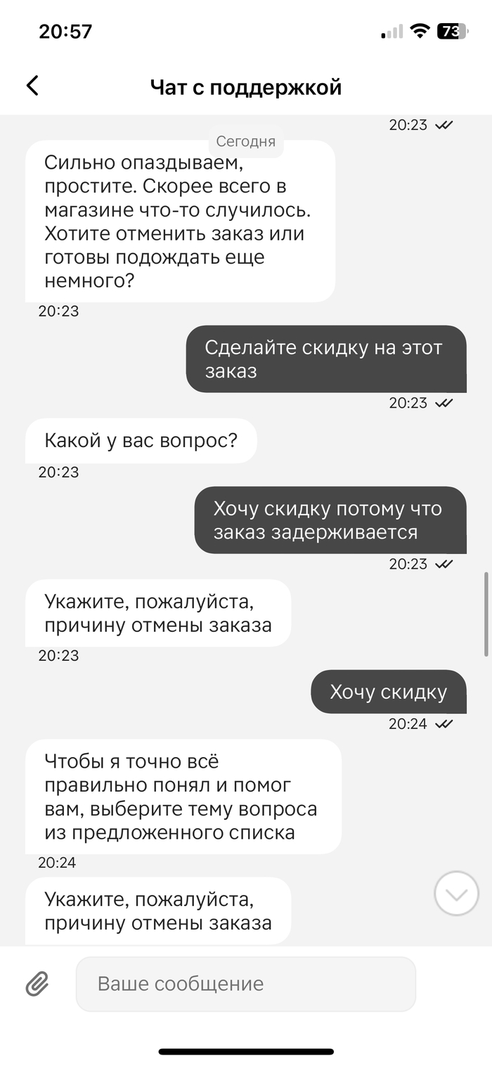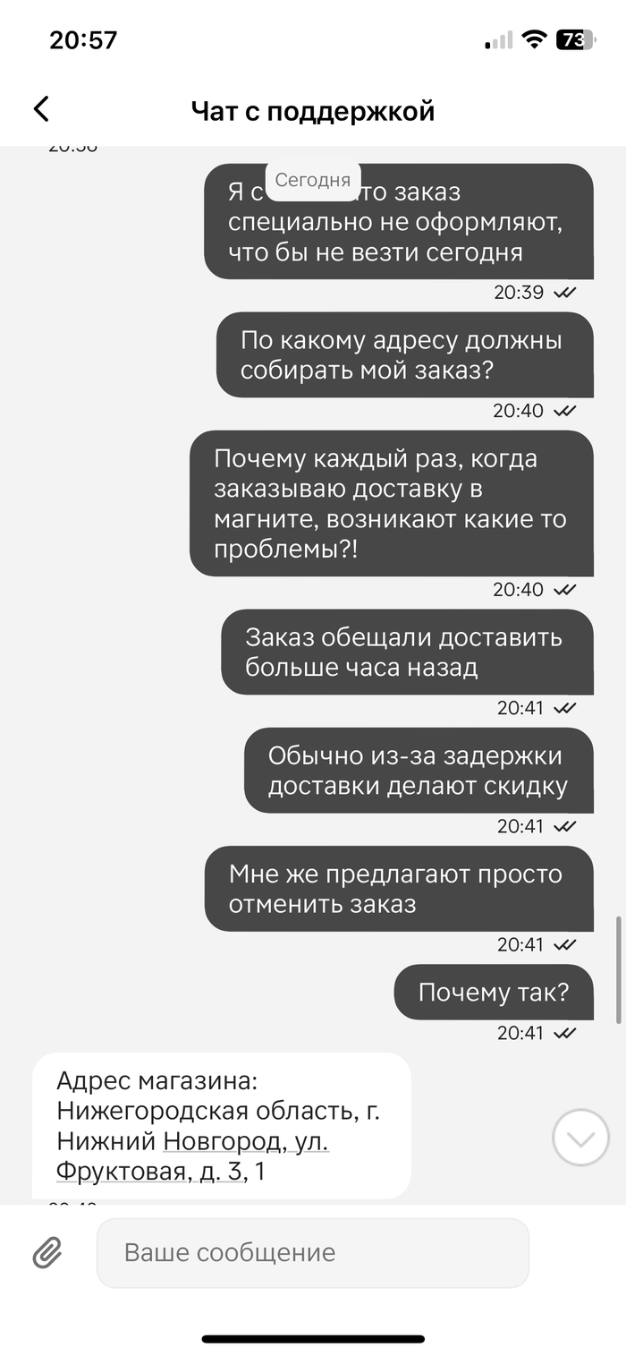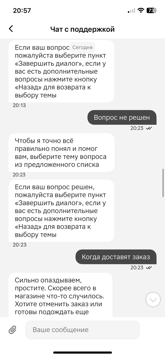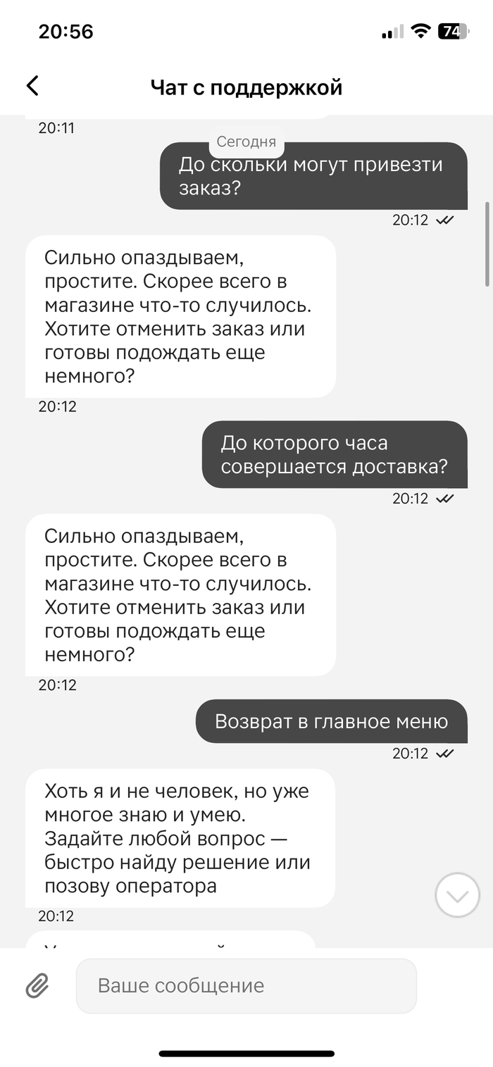 Уже не первый раз заказываю там, точнее пытаюсь. Первые раза два доставляли без проблем, но потом они начались. То доставят не те товары, то задерживаются, то товары которые в корзине заканчиваются пока дооформляю заказ. Долго не заказывала там, сегодня решила попробовать и всё зря, осталась без продуктов 🥲