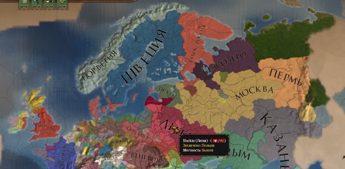 Не нравилось мне, как складывалась партия, Новгород достался Дании ведь, как то не по православному :) Но партия поводов дропнуть себя не давала, за счет литовских земель.