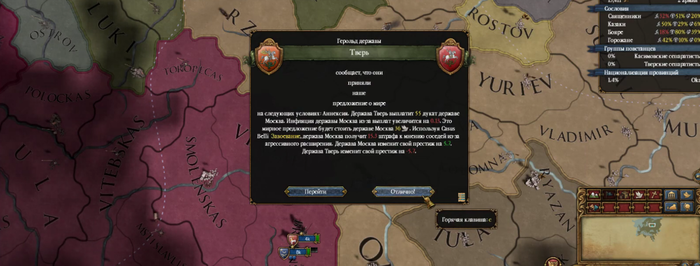Как я уже писал выше, почти всегда играю за Московию, но часто между партиями пропускаю несколько длс и кучу патчей. Игра меняется, тактика забывается или перестает работать. И в итоге получается, что каждый раз, как новый. Но перед этой партией я немного ̶п̶о̶с̶л̶и̶в̶а̶л̶с̶я̶ потренировался.