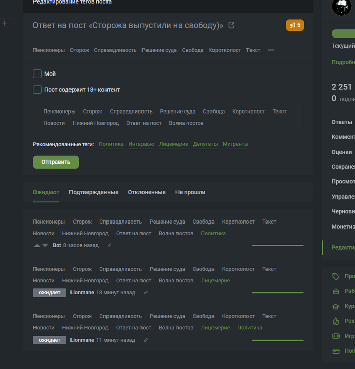 А чего это у вас на пикабушечке вдруг не банятся посты, у которых всего лишь одна ссылка на источник, и при том она скрыта под общим текстом на фоне картинок с кексиками? При том в самом тексте ссылаемой статьи не упоминается, что он именно освобожден по решению суда. В тексте поста не указаны данные об аккредитации новостного издания, на который он опирается. А вот другие посты легко и моментально трут из-за отсутствия тысячи подтверждений.