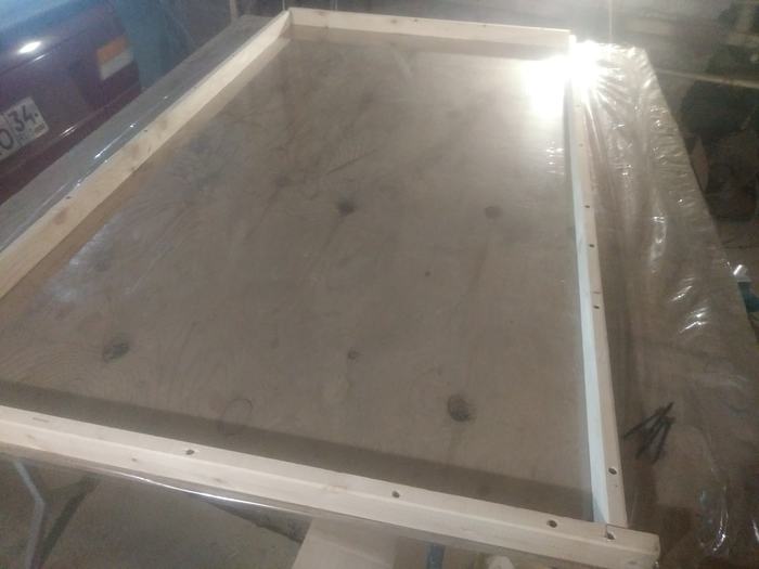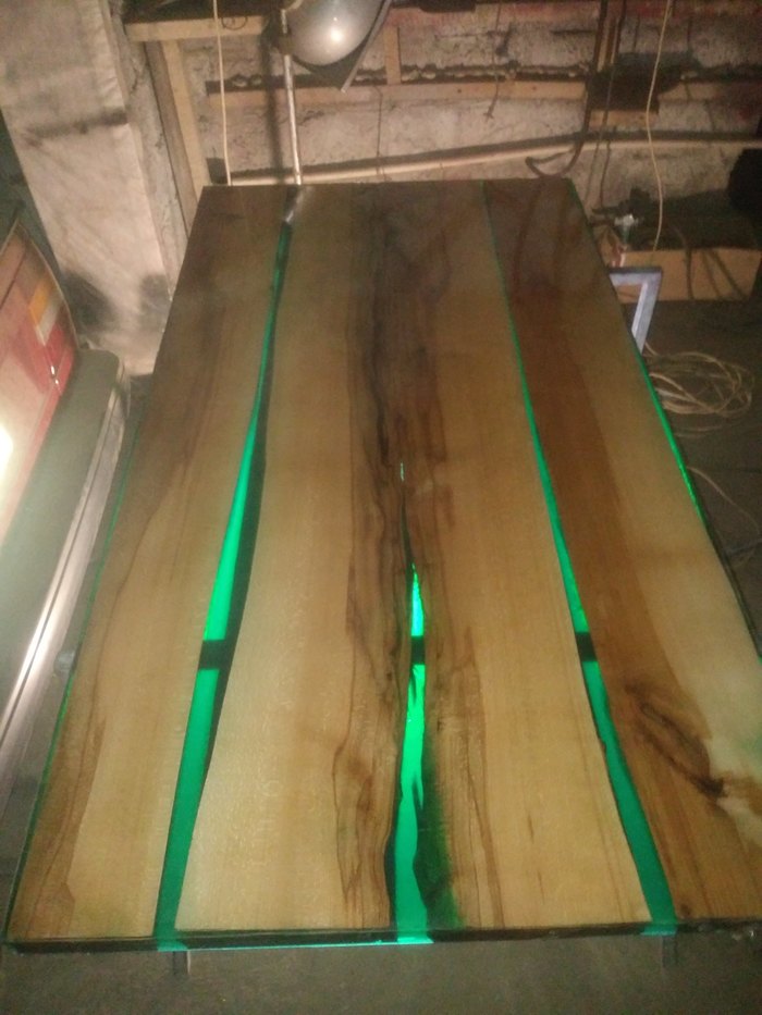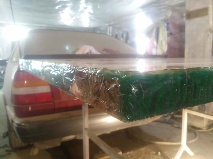 Про текучесть смолы на фото видно что в месте прижима стола струбцинами она туда затекла.
