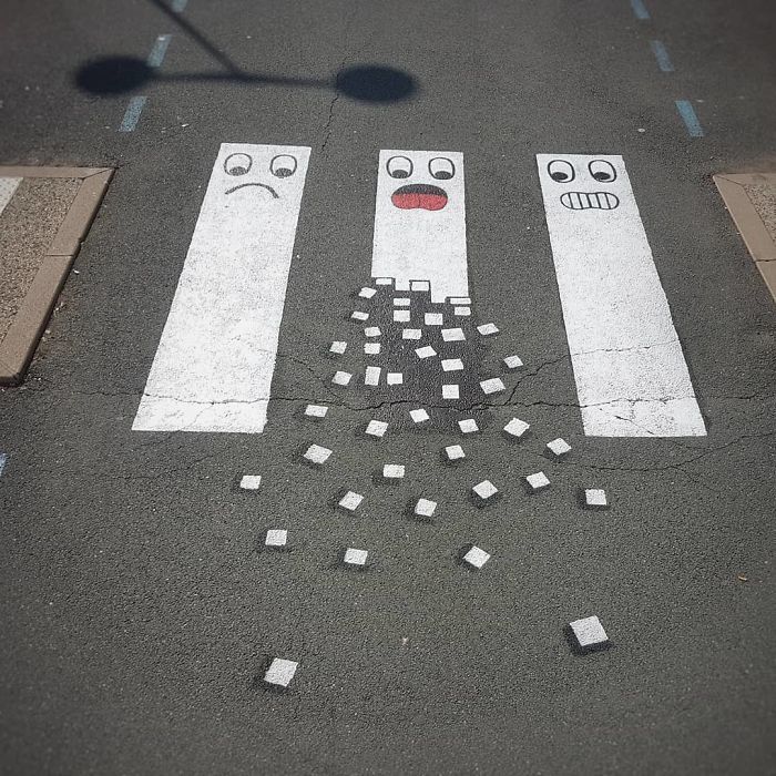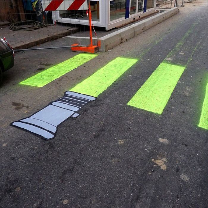 Француз OakOak, работы которого уже были на пикабу здесь и здесь, на этот раз поработал над пешеходными переходами, чтобы они стали чуть заметнее.