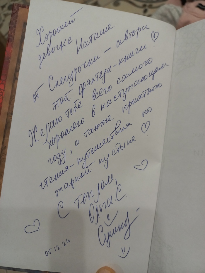 А потом, а потом я решила открыть книгу. А там! Подпись автора! От помощницы моего Дедушки- Снегурочки! Вот это прям в самое моё сердечко!! 🥰