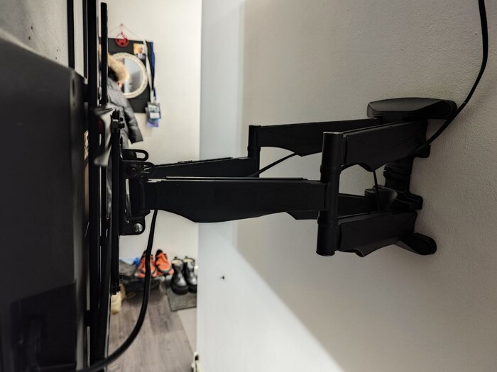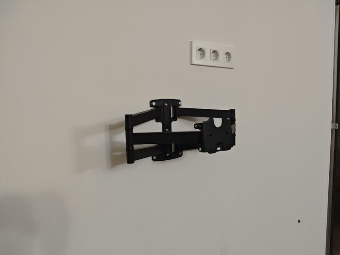 Самый очевидный путь - это купить кронштейн, пришпандорить его к стене и повесить телевизор. И кронштейн у меня был: