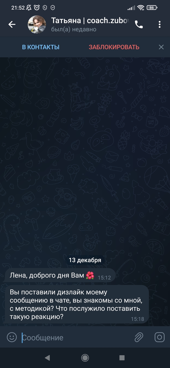 Отвечать ничего не стала, было не то настроение, но это забавно писать лично человеку, если он не разделяет твои взгляды и вообще будь готова к негативу, если что. Работа с возражениями не так происходит, слишком агрессивно и навязчиво. Я такое не люблю, сама продажник в прошлом.