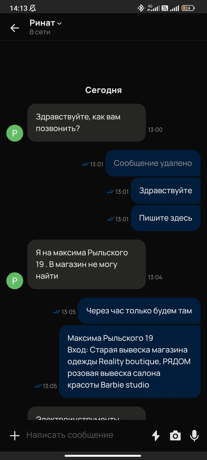 На основании вышеуказанных фактов прошу удалить отзыв как не соответствующий действительности и порочащий репутацию продавца. Отзыв основан на вымышленных обстоятельствах, не подтверждённых ни одной записью из переписки, и не отражает реального хода событий.
