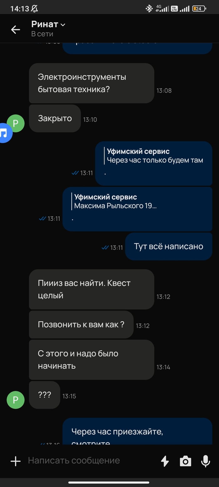 В переписке нет ни подтверждения сделки, ни обсуждения оплаты, ни конкретных договорённостей о покупке. Более того, продавец вежливо реагирует на сообщения пользователя, предлагает скидку или другие варианты урегулирования, если возникнут вопросы, и даже уточняет, не перепутал ли пользователь адресата для отзыва.