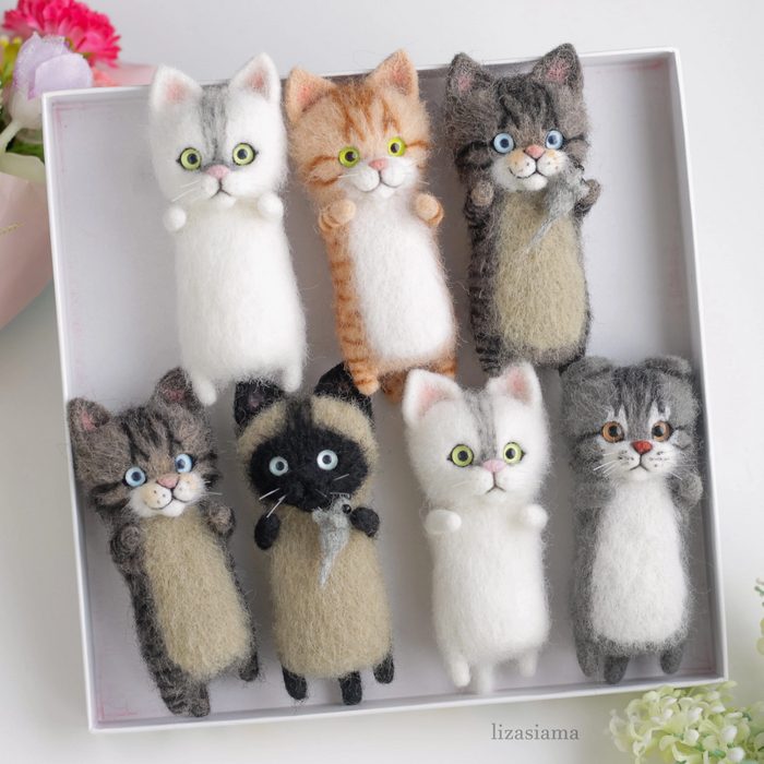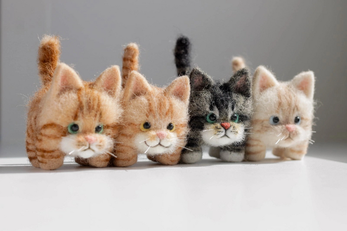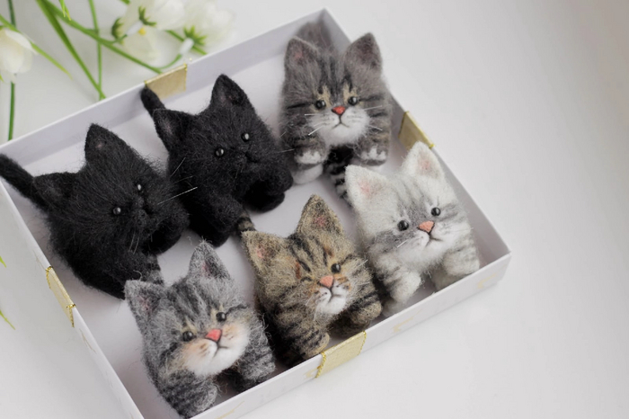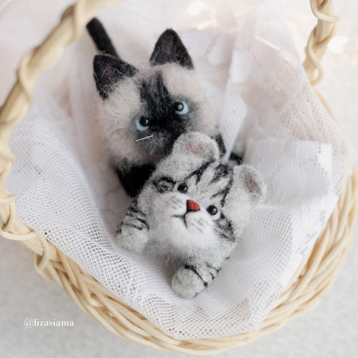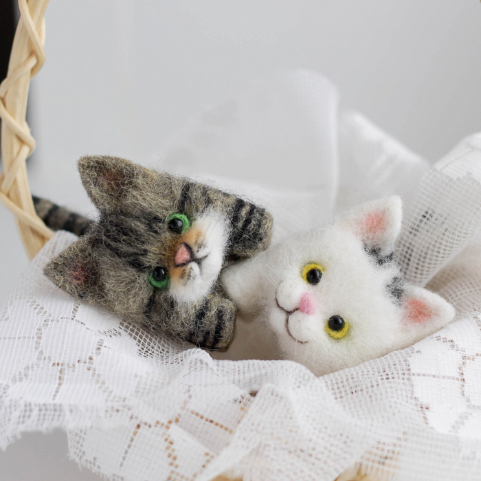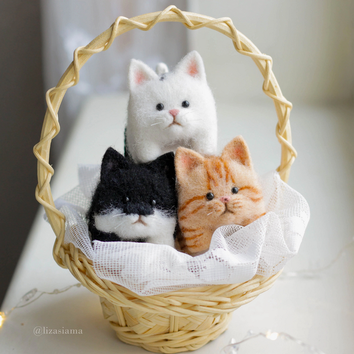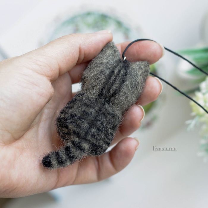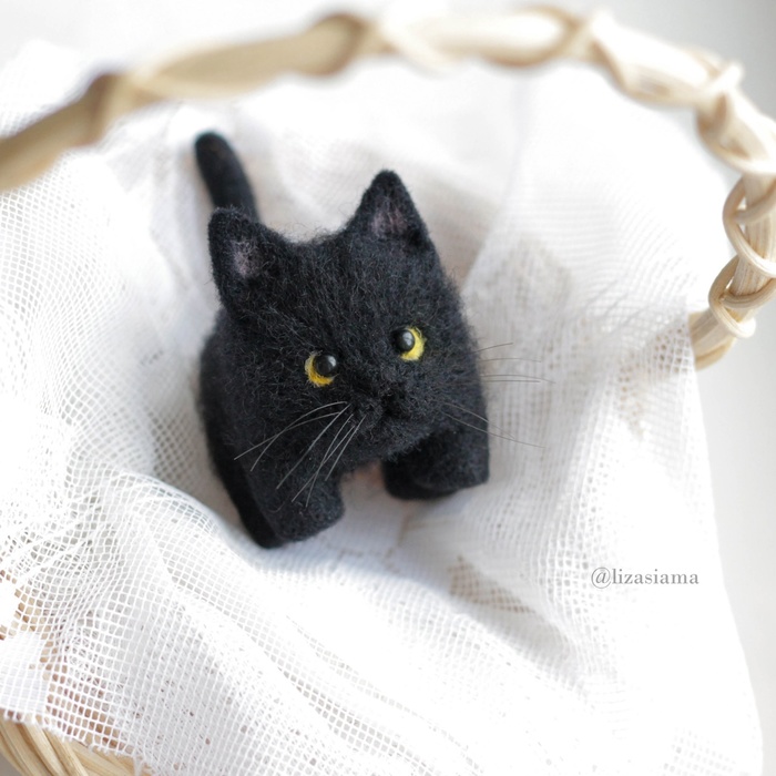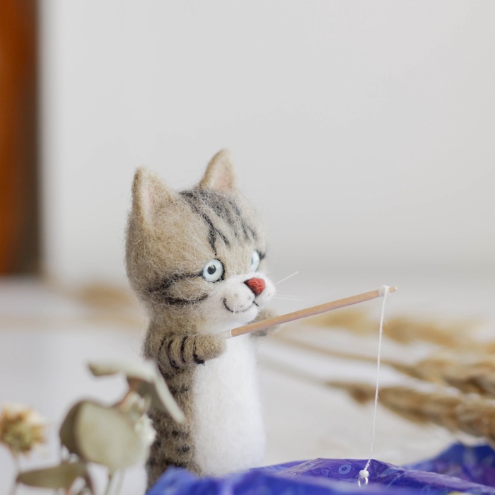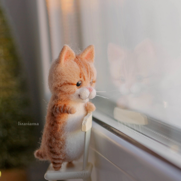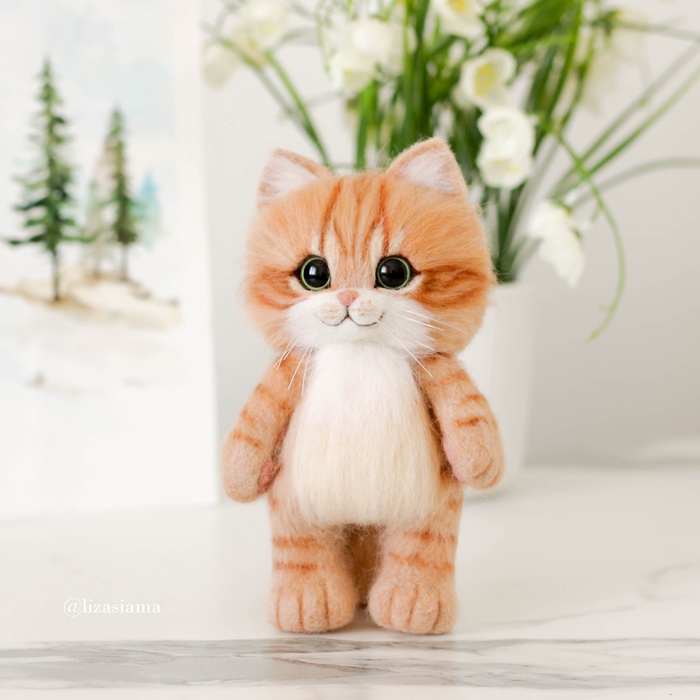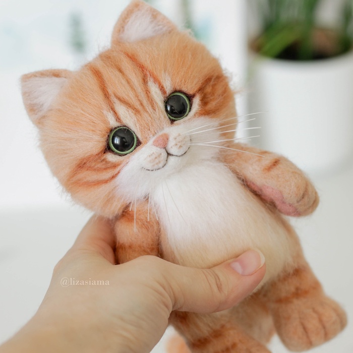 Котик создан в технике сухое валяние из овечьей шерсти. Высота 9 см. Лапы и хвост на проволочной основе. Глазки из стекла.
